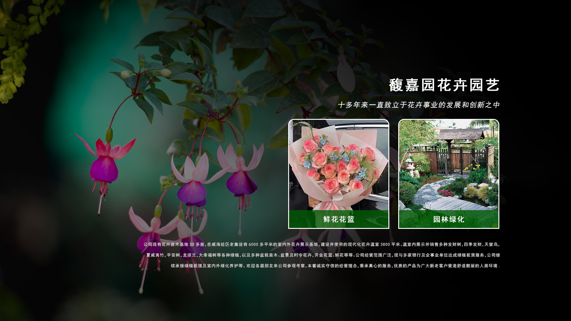 公司現(xiàn)有花卉苗木基地30多畝,在威海經(jīng)區(qū)老集設(shè)有6000多平米的室內(nèi)外花卉展示基地,建設(shè)并使用的現(xiàn)代化花卉溫室3800平米